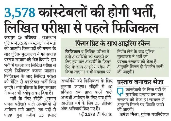 Notification goes to be issued on 3578 posts for Rajasthan Police Constable Recruitment Examination 2023. This time there will probably be a bodily examination earlier than the written examination in Rajasthan Police Recruitment. Solely candidates who handed in Rajasthan CET examination can apply for Rajasthan Police Constable Recruitment Examination 2023. 15 occasions i.e. 53,000 candidates will probably be referred to as for the bodily examination as in comparison with the vacant posts.