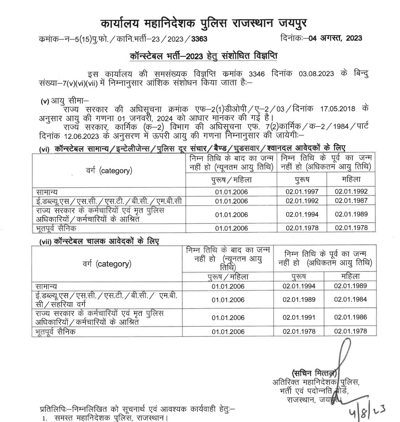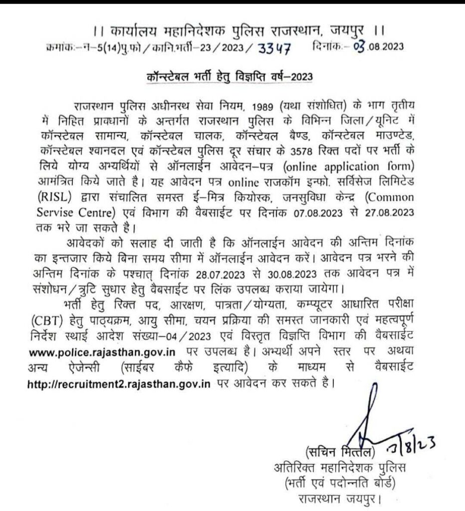 Rajasthan Police Constable Emptiness 2023 Notification 03 August 2023